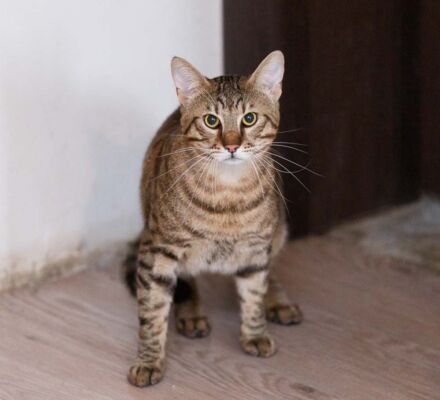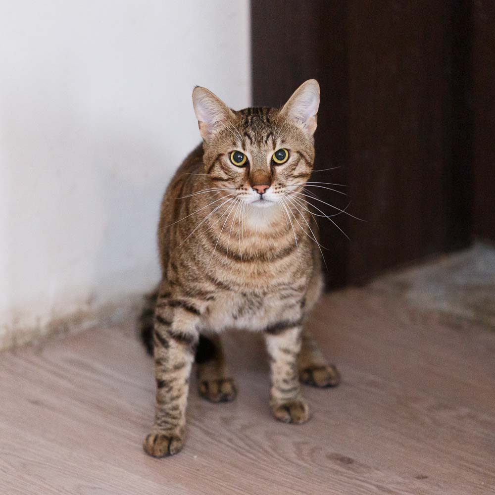 We found Bata with the help of our Pet Mondo dog, Spens. In a hard‑to‑reach part of the forest, Bata was lying with his little sister beside their dead—likely poisoned—mother. We took them in with very little hope they would survive, as they had spent hours under the scorching sun, without food or water, exposed to potentially toxic substances. Thanks to the tremendous support of our veterinarians, both kittens pulled through. Today, Bata is a grown cat who wins everyone over with his gentle nature. He gets along well with other cats and with dogs.